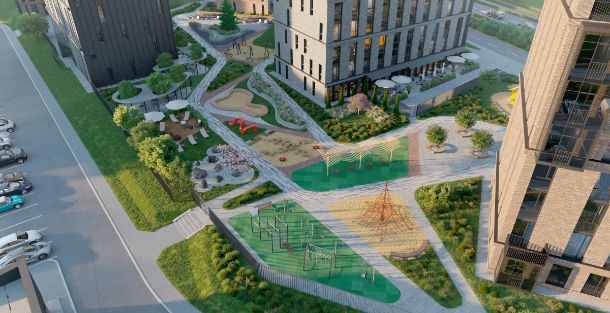 Комплекс строится не как набор зданий, а как полноценная городская среда. Здесь удобно жить, легко находить баланс между личным и общественным, работать и отдыхать. Близость к магазинам, школам, медицинским учреждениям и культурным локациям делает повседневную жизнь насыщенной, но не перегруженной. Активное сообщество жильцов формирует атмосферу взаимной поддержки, где каждый чувствует себя частью единого пространства.