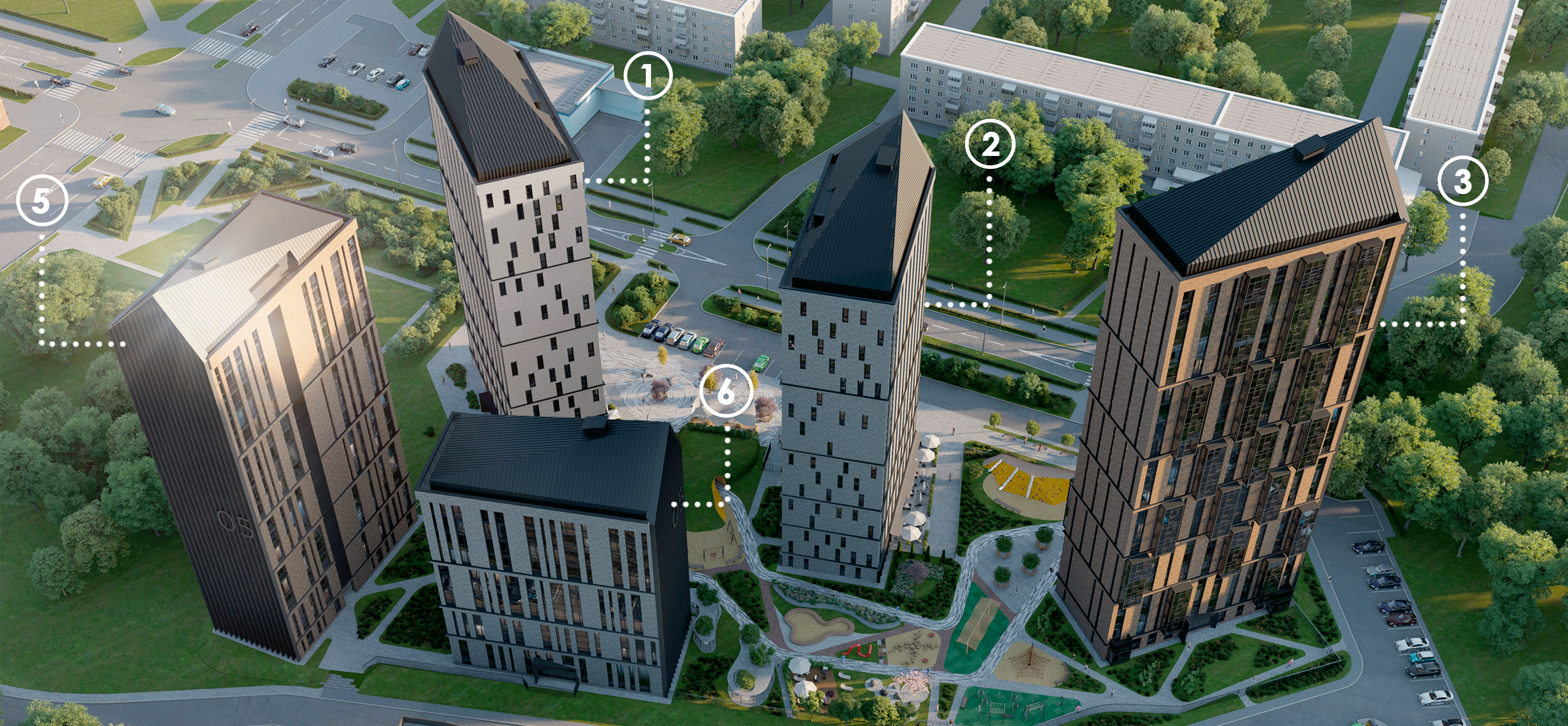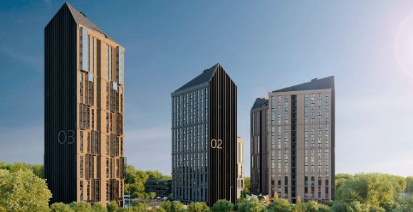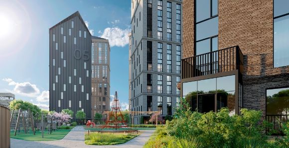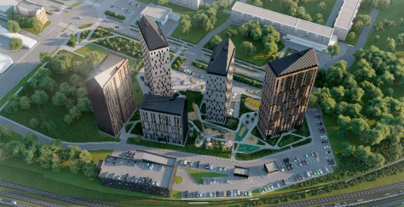 - Комплекс включает 5 монолитно-каркасных домов с современными планировками;